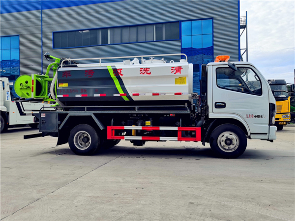 清洗部分:1.8方水箱,采用4mmQ235优质碳钢板,水箱两侧消防接口进水,工具箱一个。采用德国品浮高压泵170升流量,24兆帕,配60米内径19#高压管,10个大小不同喷头一套, 后置式清洗卷盘,带淋管装置(用于淋洗高压管疏通管道过后上面残留的污物),带气吹水功能(用于吹出每次高压管工作完以后内部残留的水渍,防止天冷结冰影响下次使用)