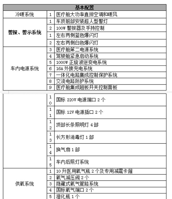 江铃特顺救护车采用江铃特顺商用车型改装。该车型柴油版使用江铃JX493ZLQ6柴油发动机,德国高压共轨技术,更精准的油嘴喷射响应, 大马力达115PS, 大扭矩285N·M,时速可达120km/h,综合油耗仅6.6L/百公里;汽油版使用三菱4G69S4N汽油发动机(自然吸气), 大马力达135PS。全系车型均配置手动5档变速箱。经过我公司专业团队悉心打造,深受行业客户的喜爱与信赖。该车外观新颖、空间设计合理。全车采用国内**的医疗车改装技术,包含救护系统、**示系统、 电器系统等,主要用于各级卫生计生委、医院。